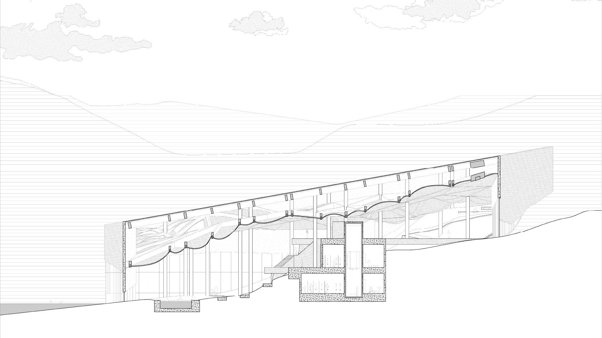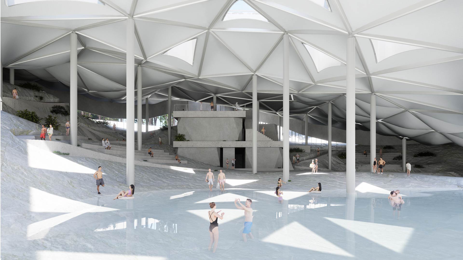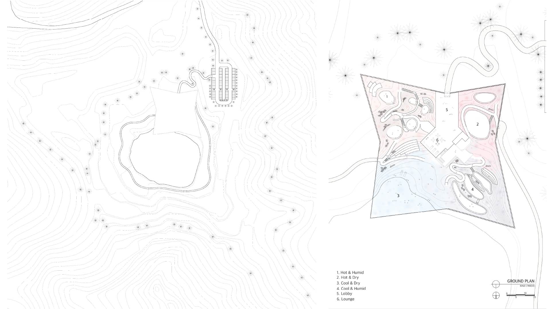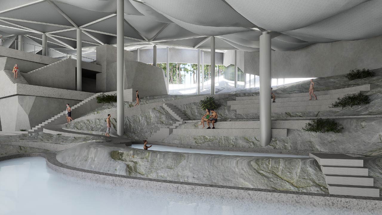 스파의 ‘얽힘’ 공간을 통해 훼손된 신체를 회복하고 훼손된 자연인 채석장에서 대지의 회복을 탐구한다. 익숙함이 된 시각중심의 공간과 낯섦이 되어버린 다른 감각들에 대한 반성을 통해 건축과 신체의 관계를 재정의하여 지각의 확장을 달성한다.