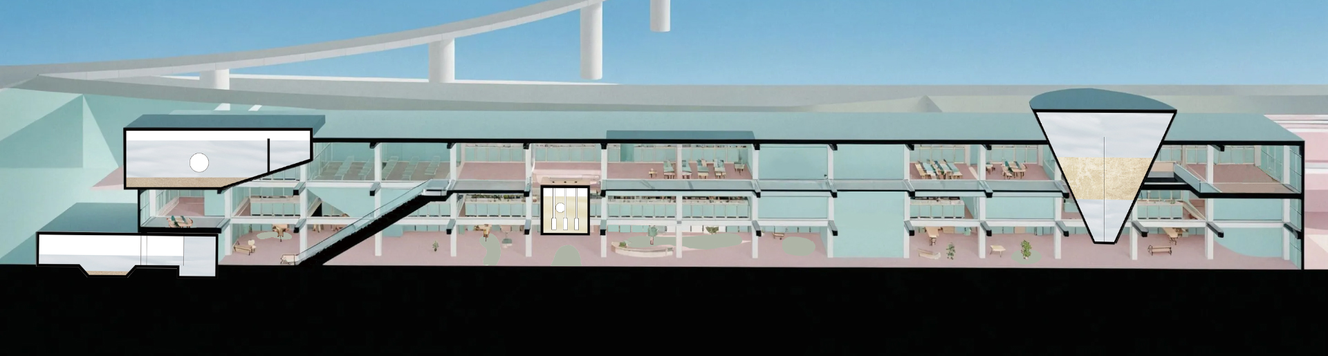 최근 교육 현장에서 학생들의 체험학습 기회가 감소하는 주요 원인 중 하나는 안전에 대한 우려이다. 특히, 한강과 같은 자연 환경에서의 체험학습은 수변 공간의 위험성과 시설 부족으로 인해 제한적으로 이루어지고 있다. 본 작품은 이러한 문제를 해결하기 위해 중랑물재생센터 인근에 학생들이 안전하게 한강의 수생생물과 물 정화 과정을 학습할 수 있는 체험학습 공간을 설계하는 것을 목표로 한다.
