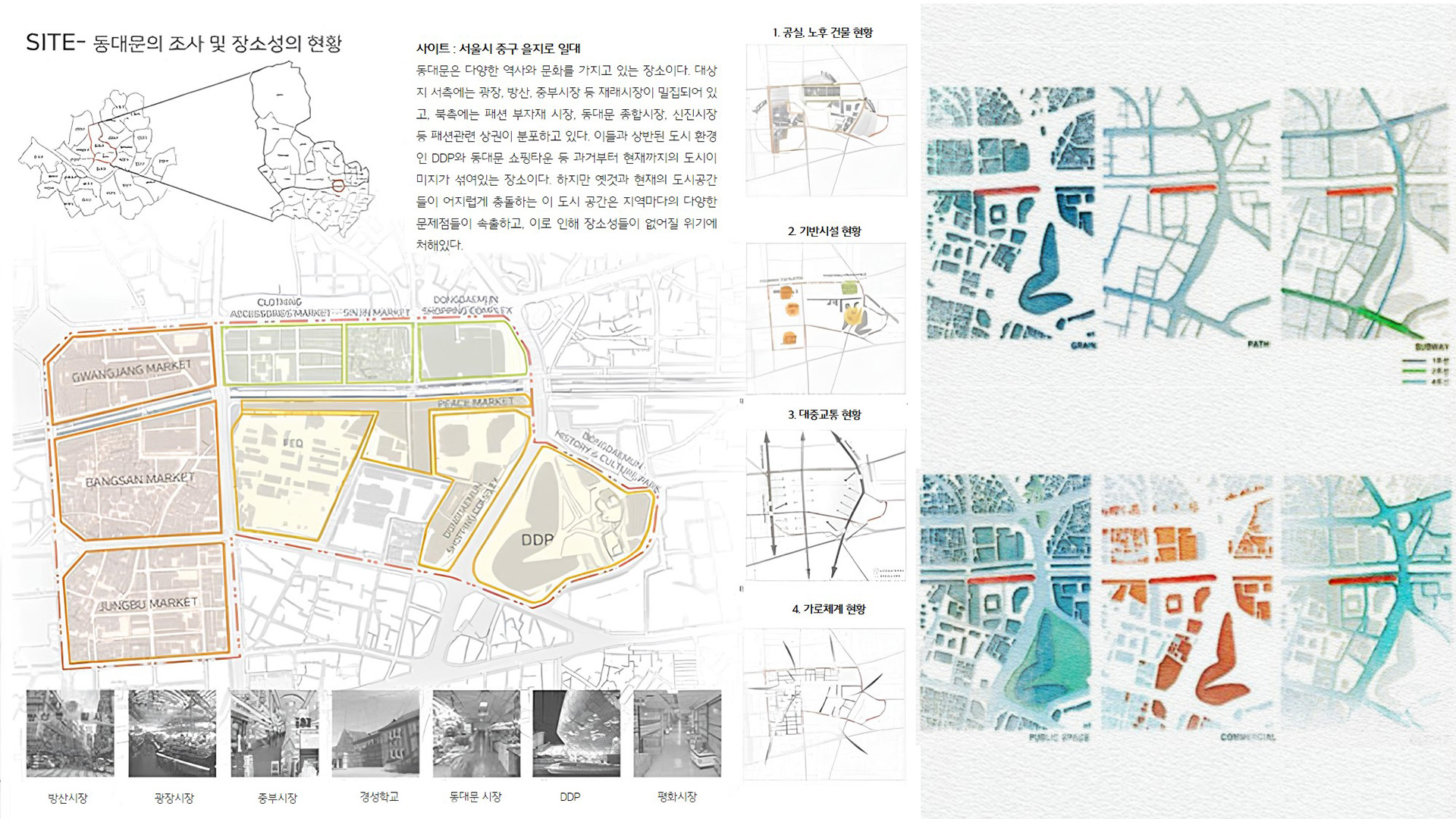 대상지는 을지로 6가 17번지에 위치한 동대문 평화시장이다. 평화시장은 현재 지상 3층으로 구성된 의류 도매 상가이다. 평화시장은 도시의 과도한 성장의 변화 속에서 평화시장 자체의 프로그램 변화는 있었지만, 전반적으로 주변의 도시환경에 대응하지 못한 채 50년 이상 정체되어 있다.