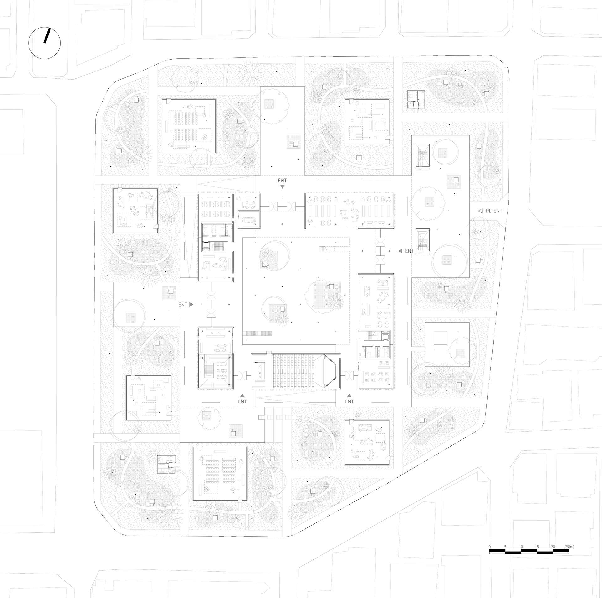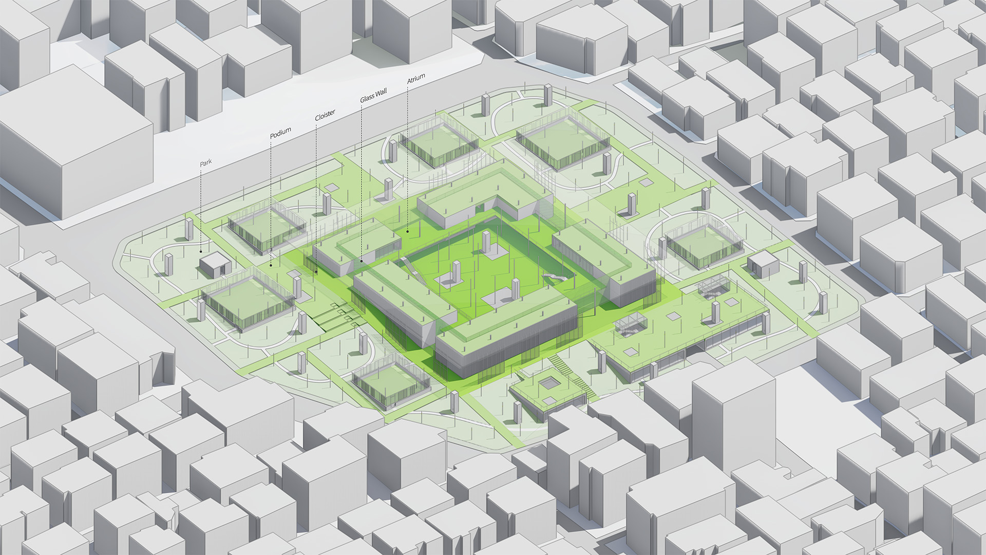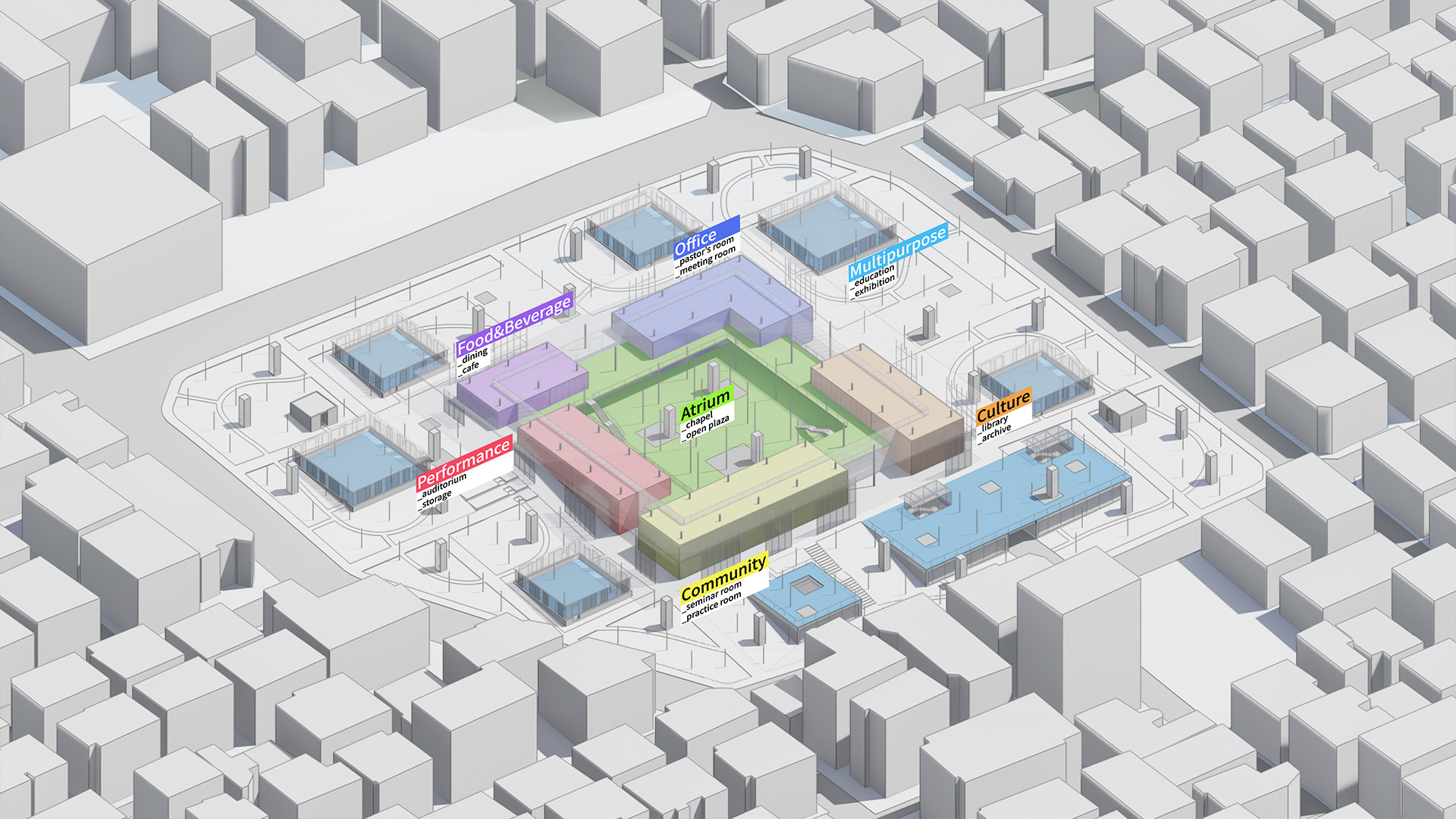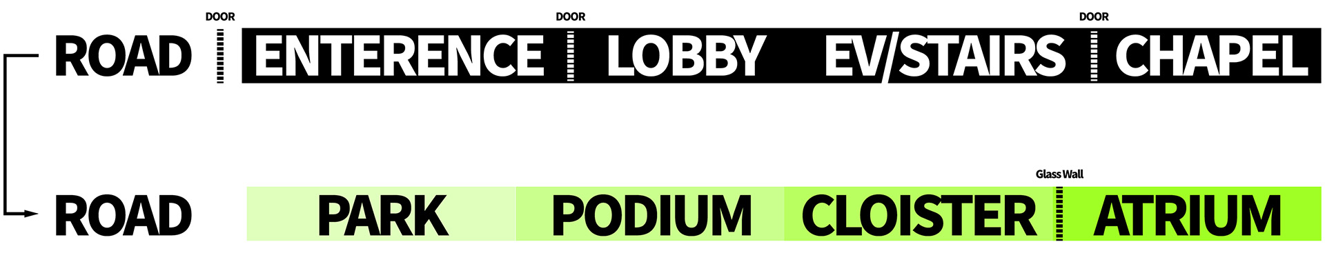 이 프로젝트는 전통적인 종교 건축물이 가진 건축적 틀에서 벗어나 사람과 도시에 기여할 수 있는 새로운 유형의 교회를 제안합니다. 도심 속에서 존재감을 과시하는 단단하고 폐쇄적인 건축 대신 내외부 사이의 자유로운 이동과 공간 경험이 가능한 유연하고 개방적인 건축을 그립니다. 어반 테라리움은 강남의 슈퍼블록 중심에 공공의 녹지와 광장을 제공합니다. 공원은 건축의 일부가 되어 눈에 보이지 않는 분위기와 경계를 만들며 장소성을 구축합니다. 이 분위기는 교회의 가장 중심에 위치한 예배당까지 이어지며 교회의 외부에서부터 내부까지 자연스럽게 연결합니다. 예배당은 광장과 같이 공공의 성격을 가져 다목적으로 이용할 수 있는 사회적 성격의 대공간으로 기능합니다. 어반 테라리움은 종교적 목적의 공간을 넘어 다양한 사회적 기능을 담아 사람들 사이의 유연한 관계를 만드는 장소를 지향합니다.